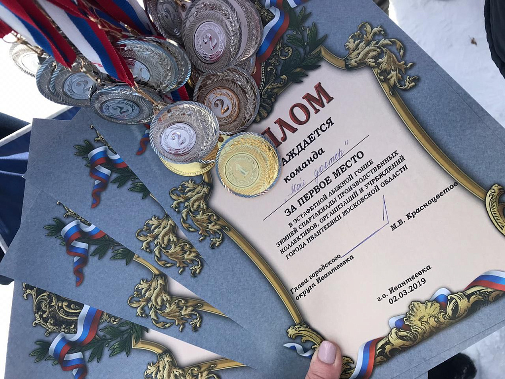 1 место в эстафетной лыжной гонке.