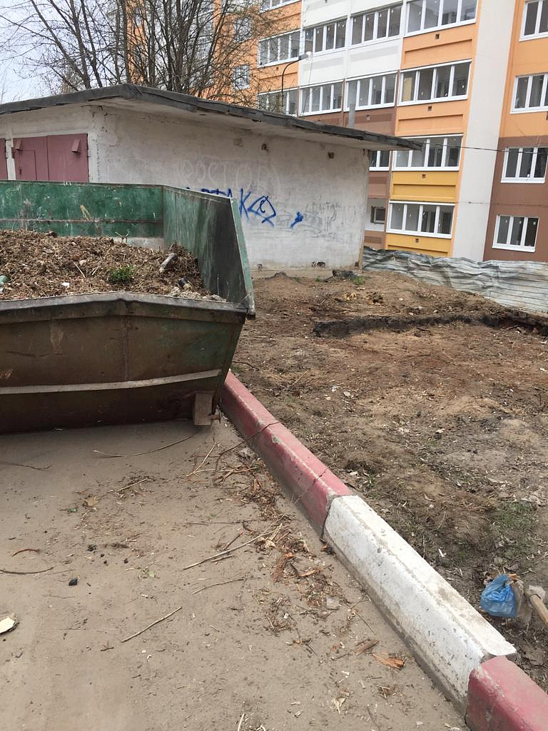 На месте сноса гаражей около отделения на Детском проезде пришлось изрядно потрудится, ведь кроме бытового мусора пришлось убирать еще и строительный!
